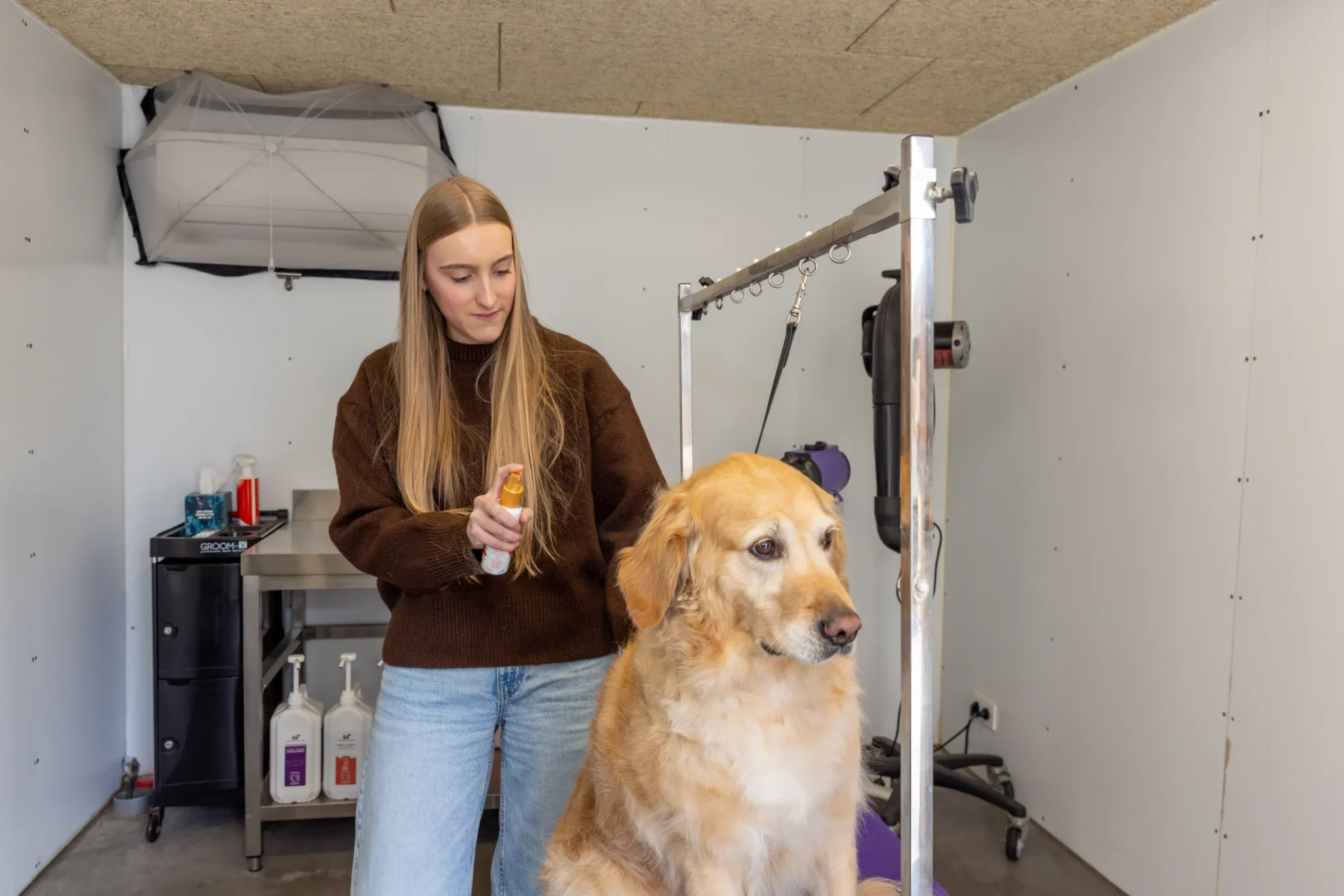 Wassen, uitblazen, ontwollen, knippen, scheren, plukken, oren verzorging, nagels knippen
